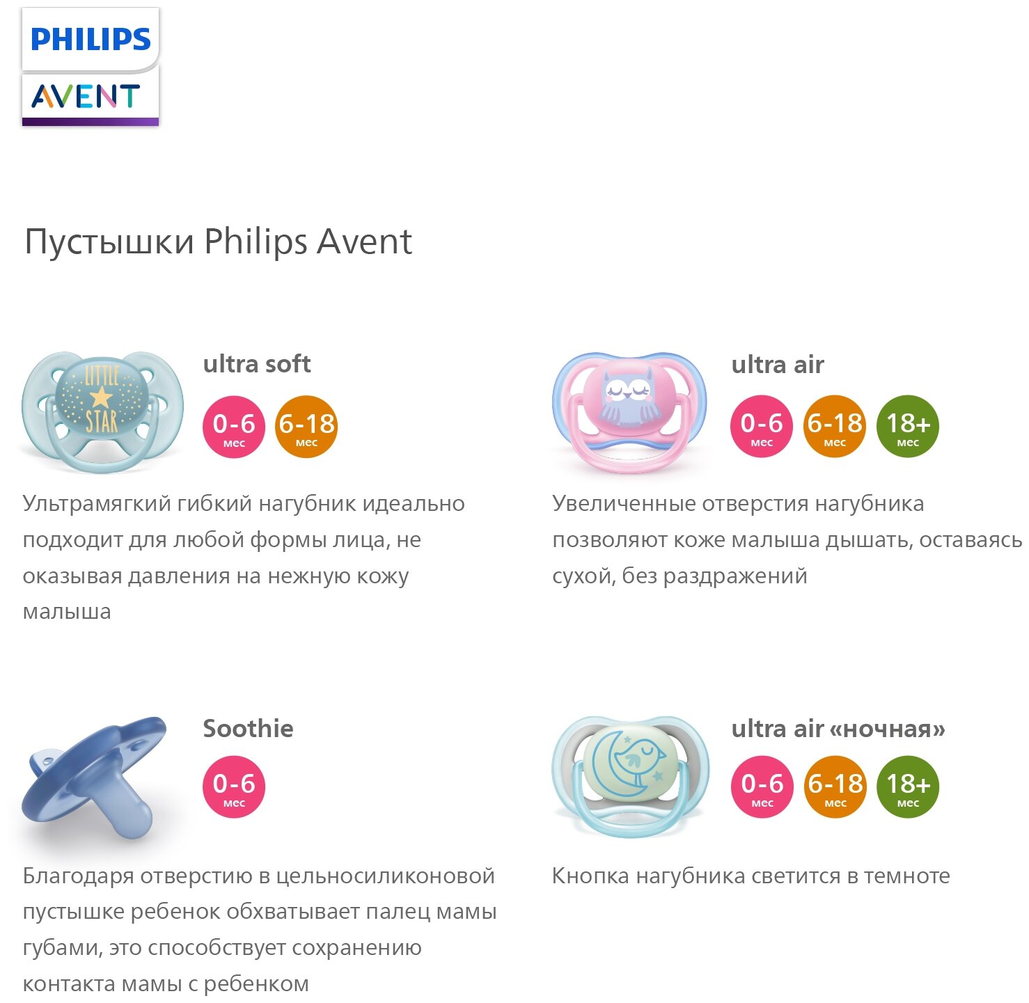 Пустышка 6-18 месяцев 2 шт. Philips Avent ultra air SCF080/16