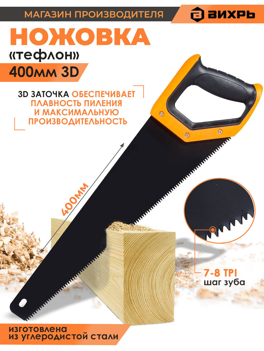 Ножовка 400 мм Вихрь ,Тефлон 3D заточка , Арт. 73/2/4/8