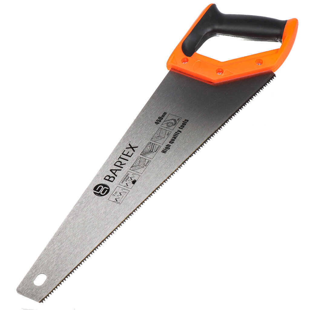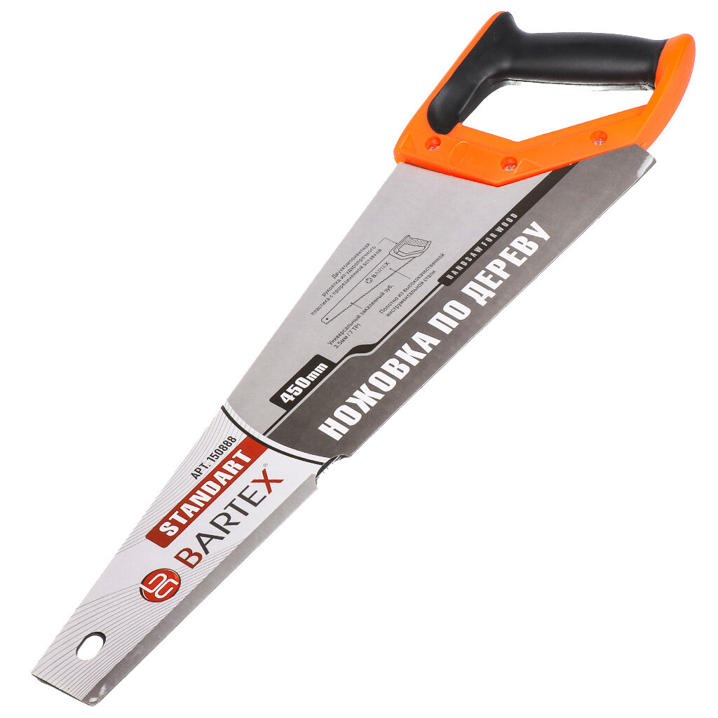 Ножовка по дереву, 450 мм, закаленные зубья, 2D-заточка, 7 TPI, рукоятка двухкомпонентная прорезиненная, Bartex, Standart