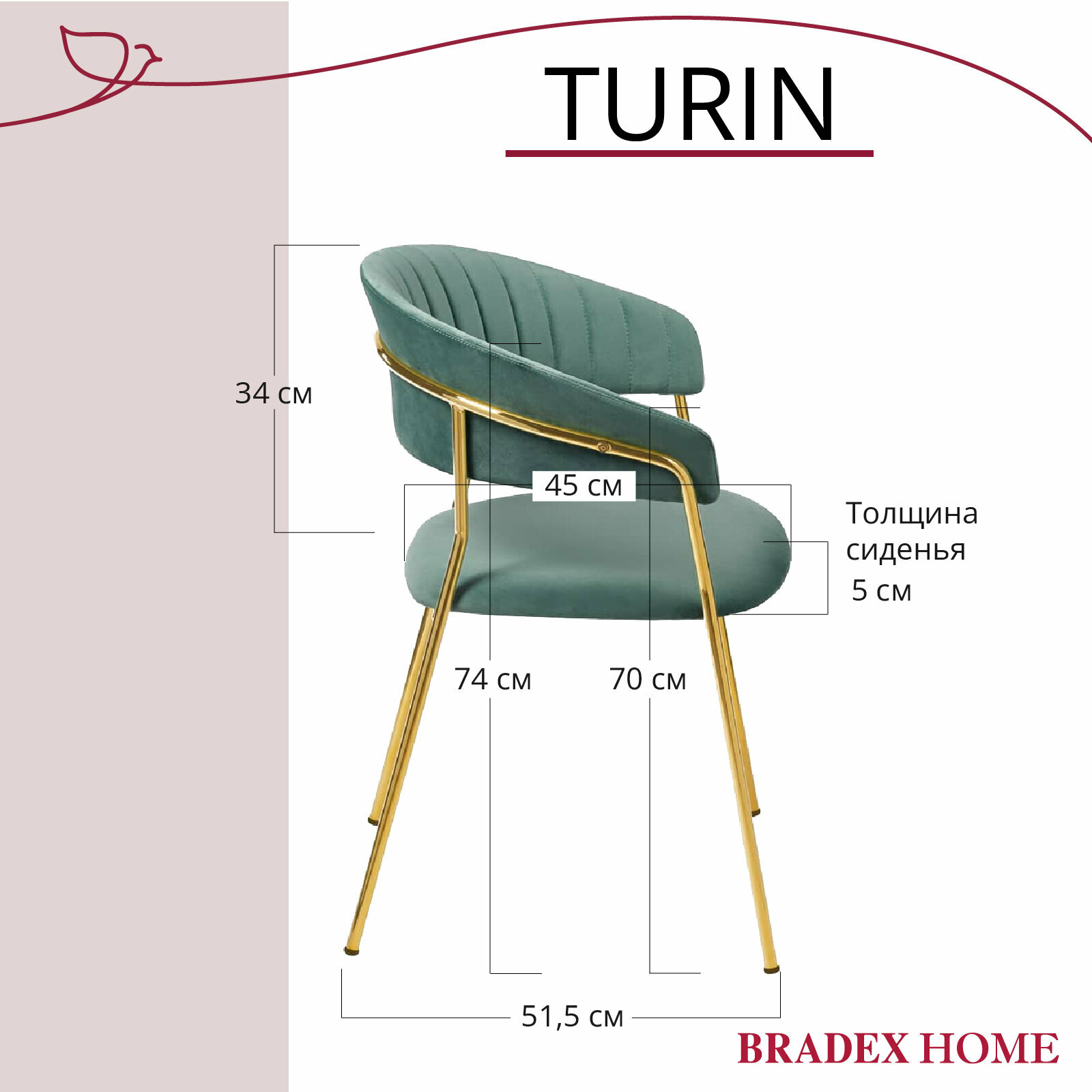 Стул полубарный Bradex Turin зеленый с золотыми ножками (FR 0908)