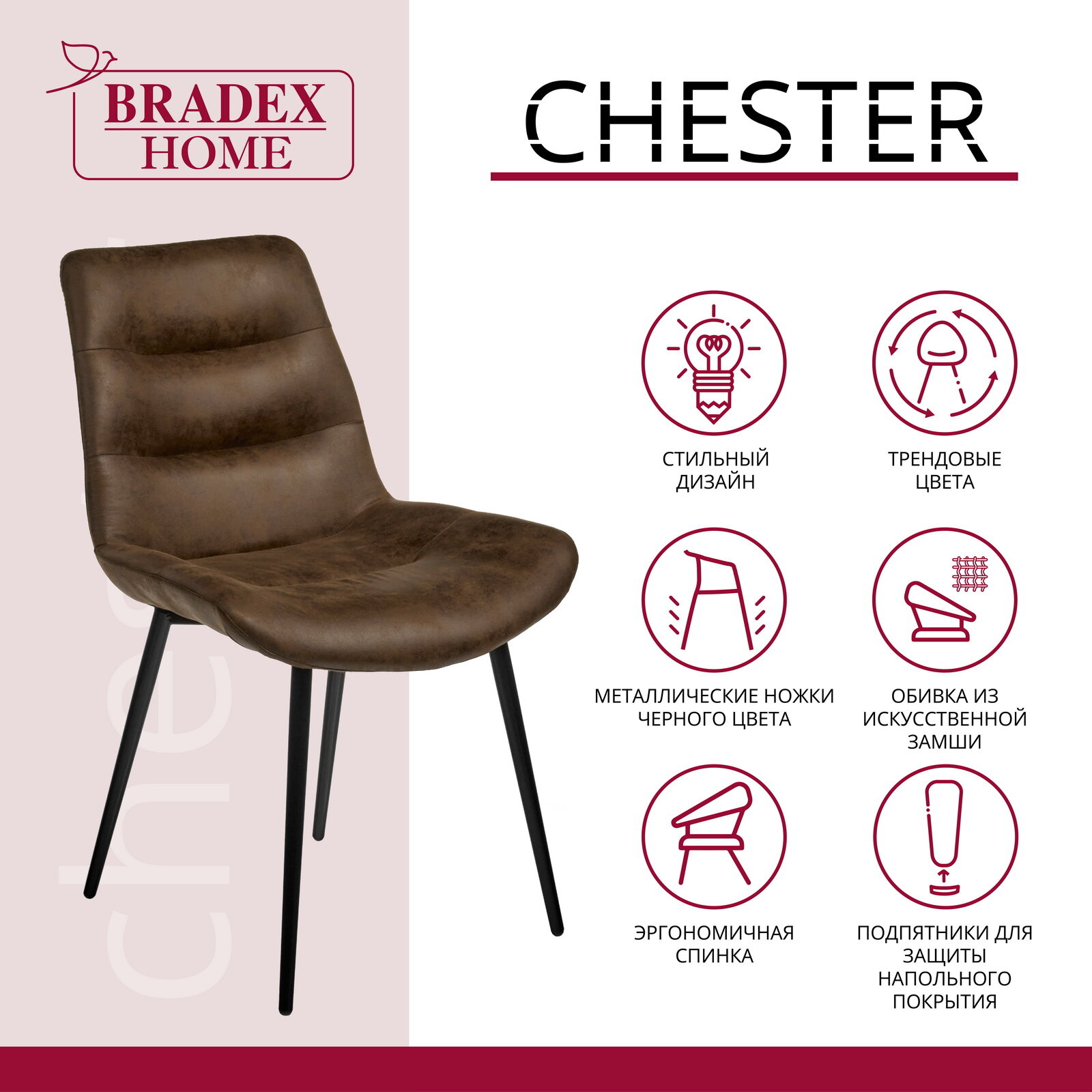 Ниже Вы можете прочитать отзывы на Стул Bradex Chester искусственная замша, коричневый (RF 0402), ознакомится с подробными характеристиками, посмотреть интересные обзоры и фотографии на Стул Bradex Chester искусственная замша, коричневый (RF 0402).