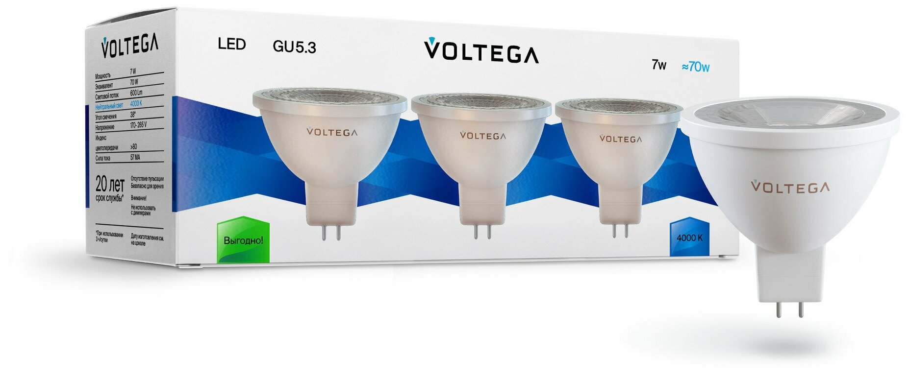 Лампочка светодиодная Voltega Simple 7179 GU5.3 7Вт 4000К интересное: