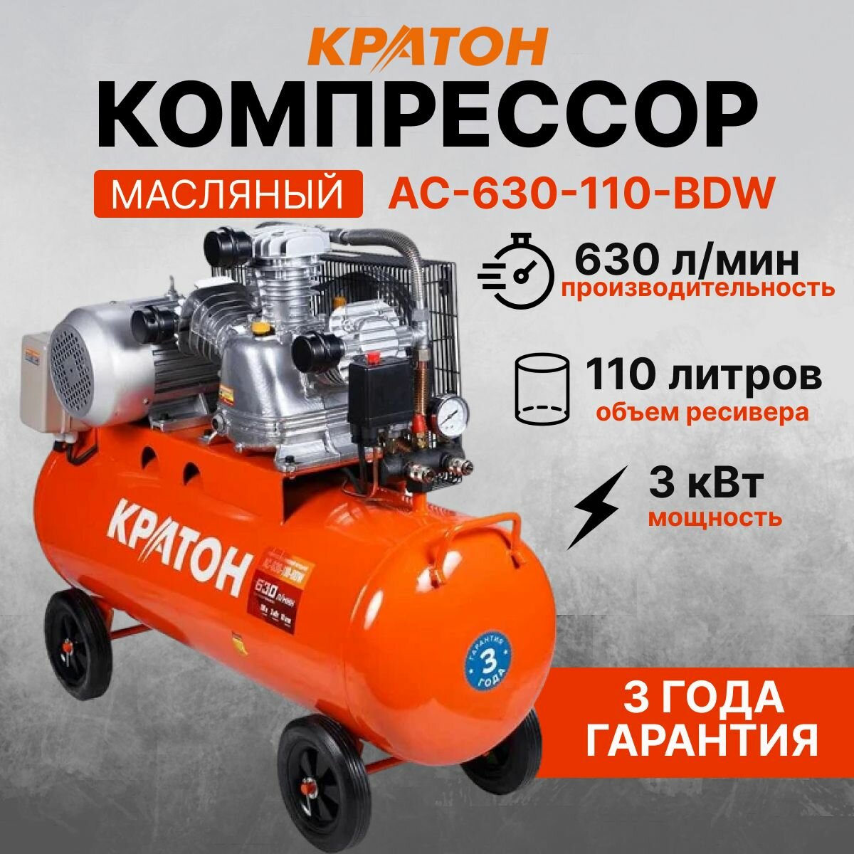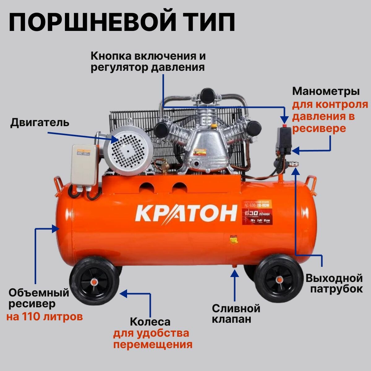 Масляный компрессор с ременным приводом Кратон AC-630-110-BDW, 3 01 01 041 интересное: