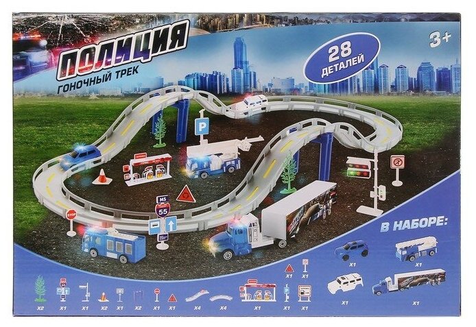 Автотрек «Полиция», 1 машина работает от батареек + сменный кузов, длина трассы 180 см (арт. 2513857)