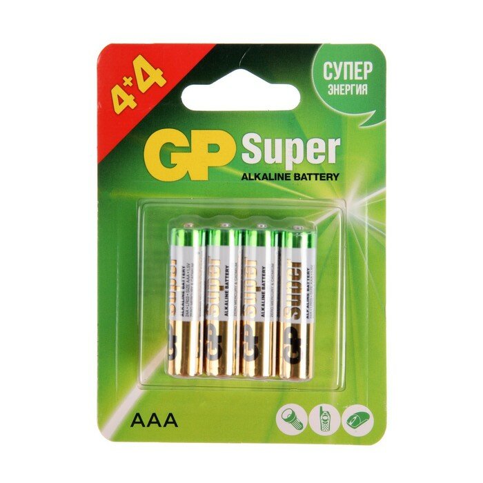 Купить Батарейка алкалиновая GP Super, AAA, LR03-8BL, 1.5В, 4+4 шт.