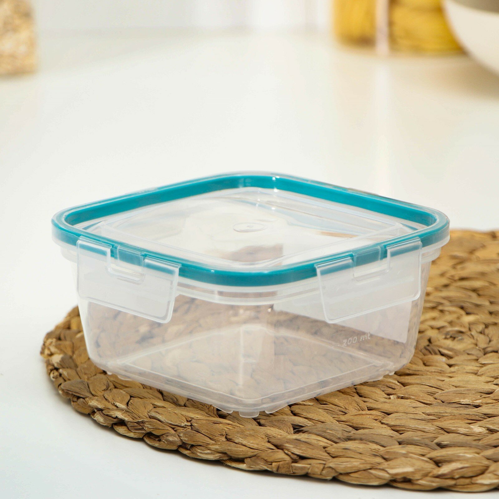Контейнер для продуктов с защёлками, 800 мл, герметичная крышка, квадратный, цвет прозрачный