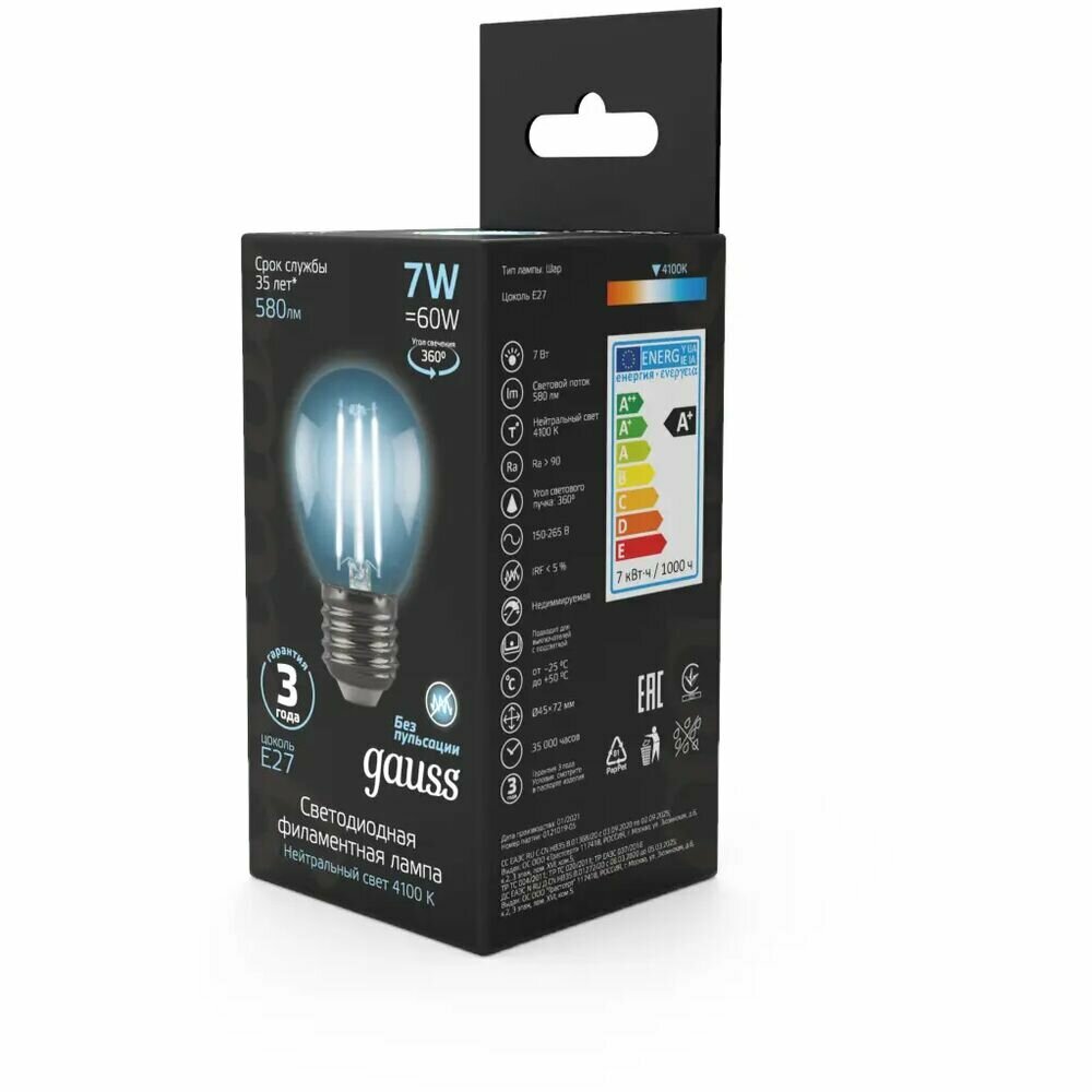 Лампа светодиодная gauss Filament 105802207, E27, G45, 7 Вт, 4100 К