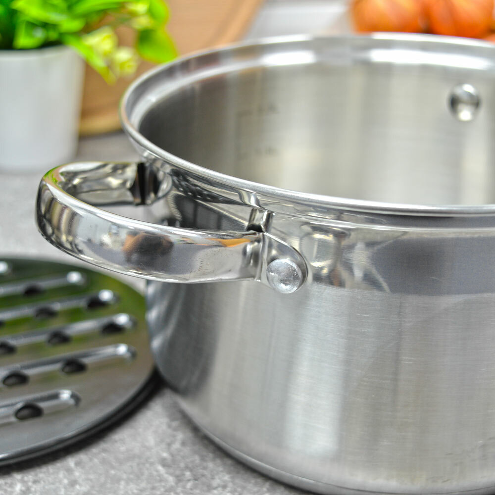 | Комплектация | кастрюли: 2.9 л, 3.9 л, 6.5; 3 крышки; бакелитовая подставка |