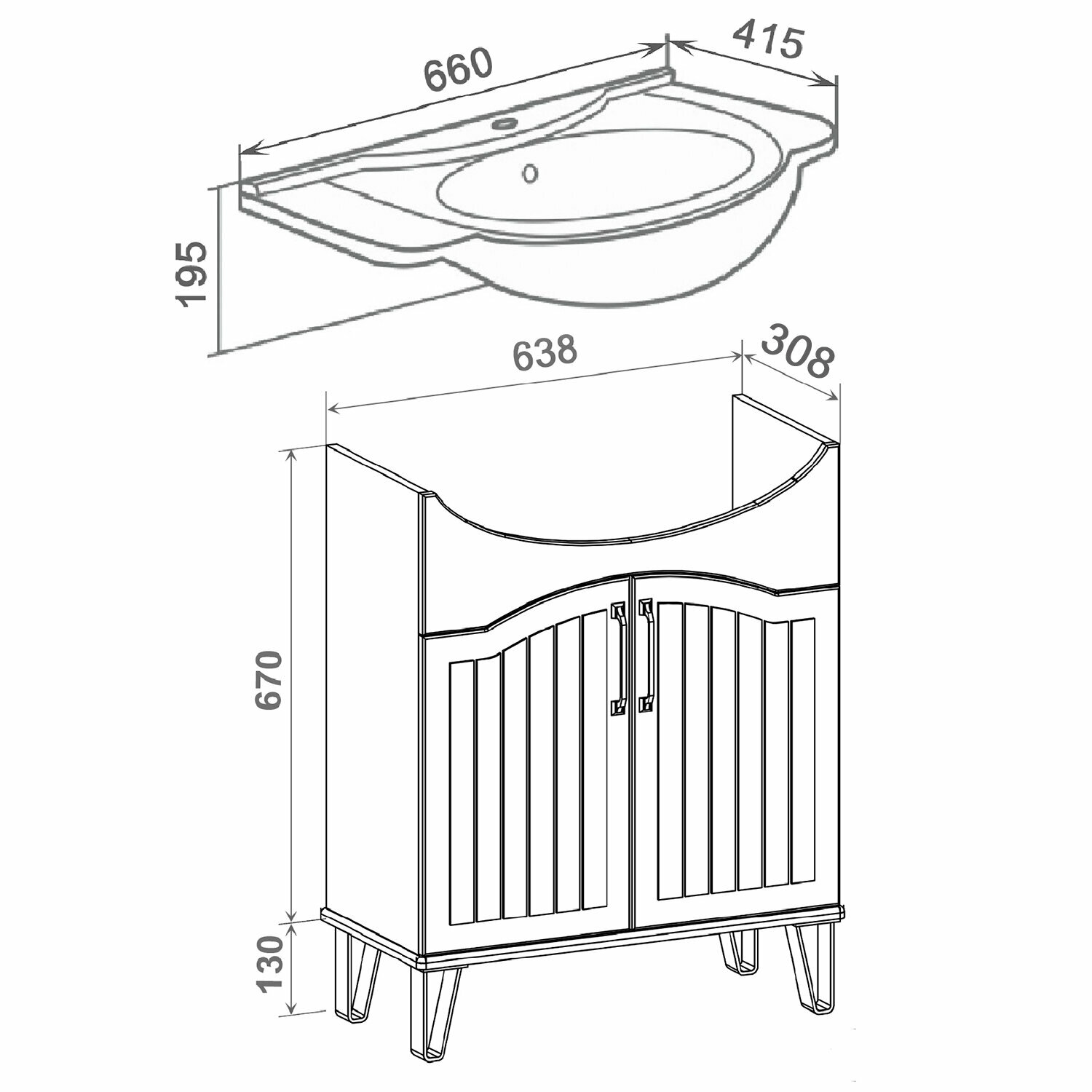 | Комплектация | 1 тумба под раковину, 1 умывальник Классик 65, 2 ручки, 4 ножки |