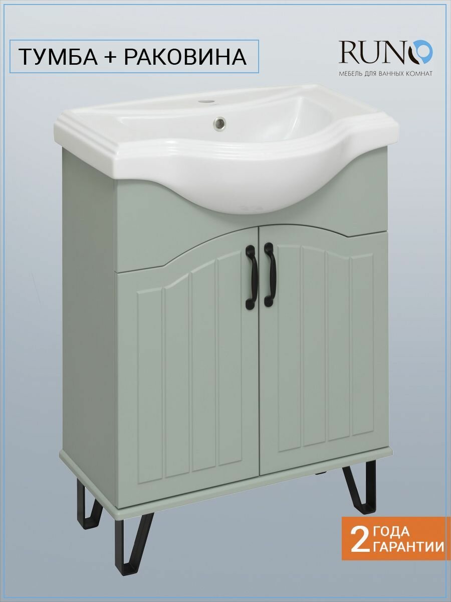 Runo Тумба с раковиной Runo Марсель 65 2 двери, мята