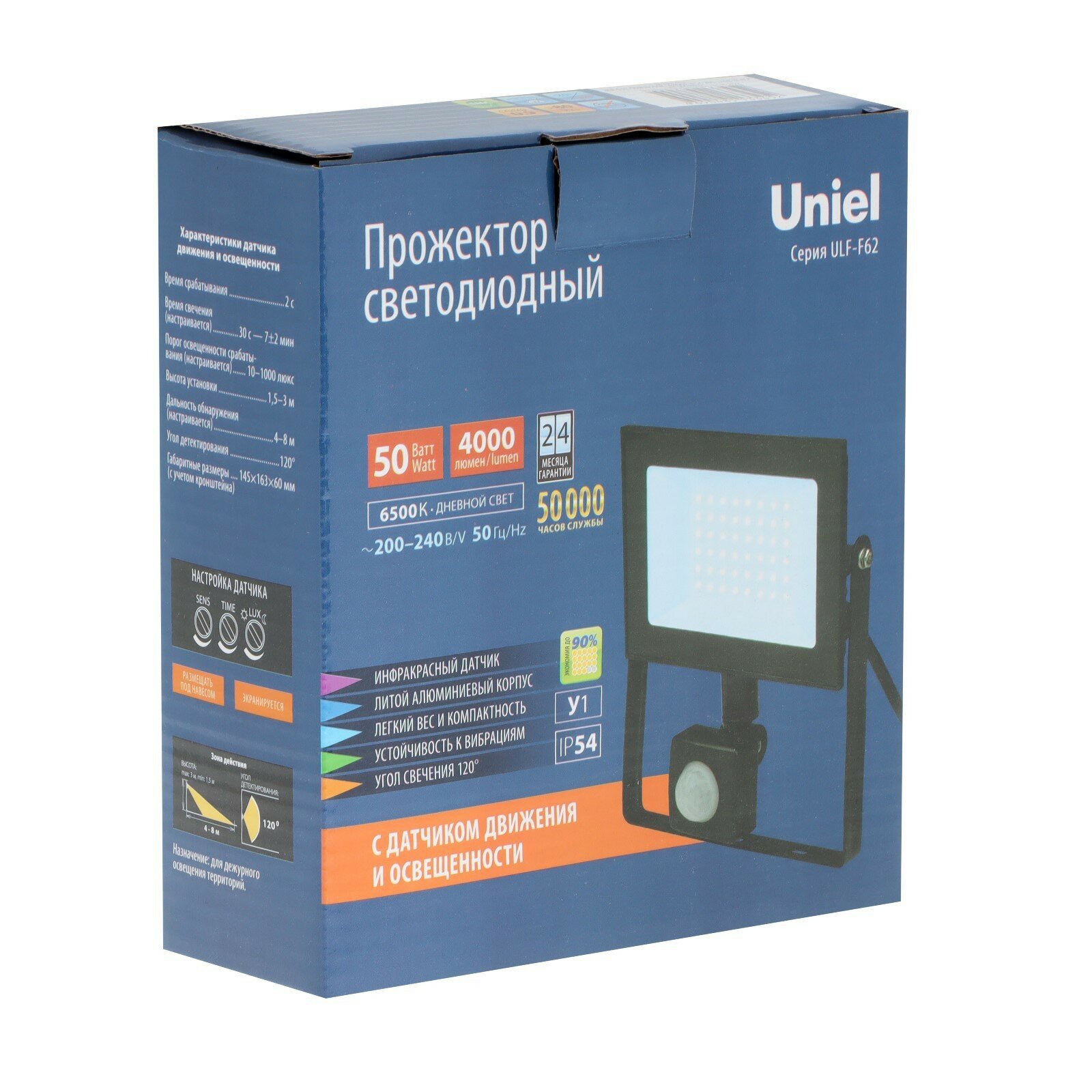 Uniel Прожектор светодиодный с датчиком движения белый свет 50W 6500K ULF-F62-50W/6500K SENSOR IP54 200-240В