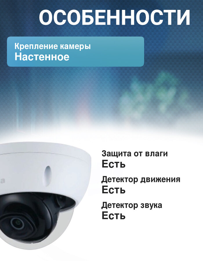 | Функции и особенности | ИК-фильтр / встроенный микрофон / поддержка WDR / слот для карт памяти |