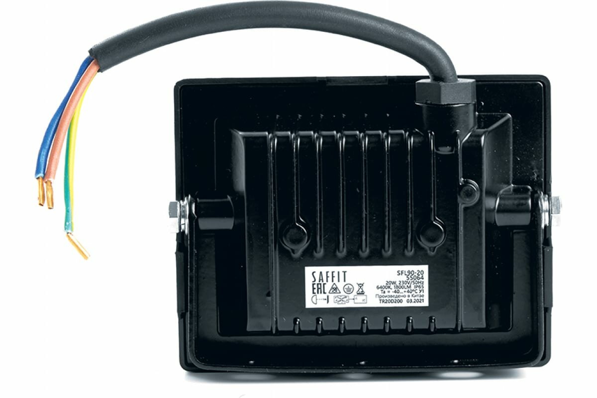 Светодиодный прожектор SAFFIT SFL90-20 2835SMD, 20W 6400K AC220V/50Hz IP65, черный в компактном корпусе 55064