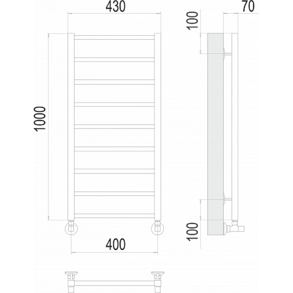 Terminus Контур Полотенцесушитель водяной для гвс 43x100h, цвет без покрытия 4670078529671