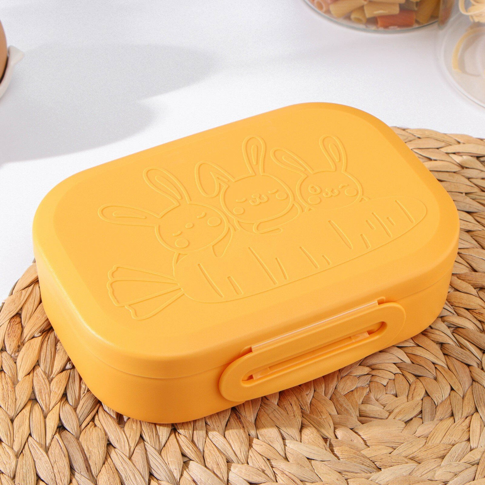 Ланч-бокс "Зайцы с морковкой", 0.98 л, 18x13x5 см, цвет оранжевый