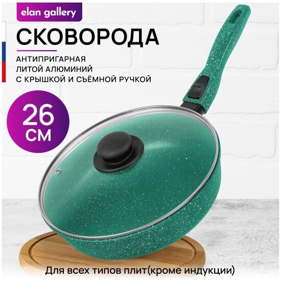 Сковорода глубокая Elan Gallery Гармония вкуса "Изумруд" с крышкой, со съёмной ручкой, 26 см интересное: