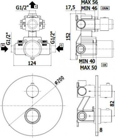 Смеситель для ванны с душем скрытого монтажа Paffoni LIGHT LIQ013NO термостатический