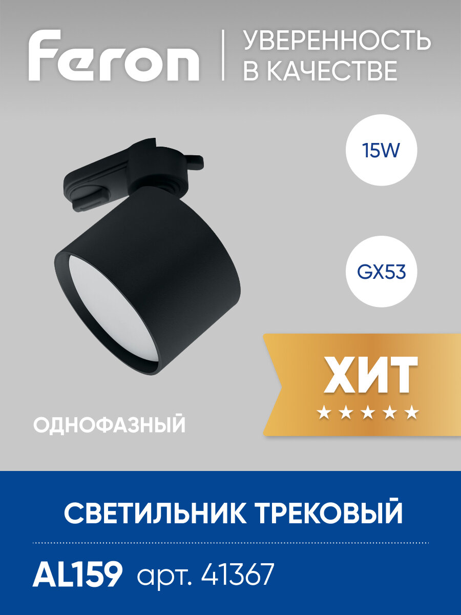 Светильник Feron AL159 трековый однофазный на шинопровод под лампу GX53, черный FERON 41367 (1 шт.)