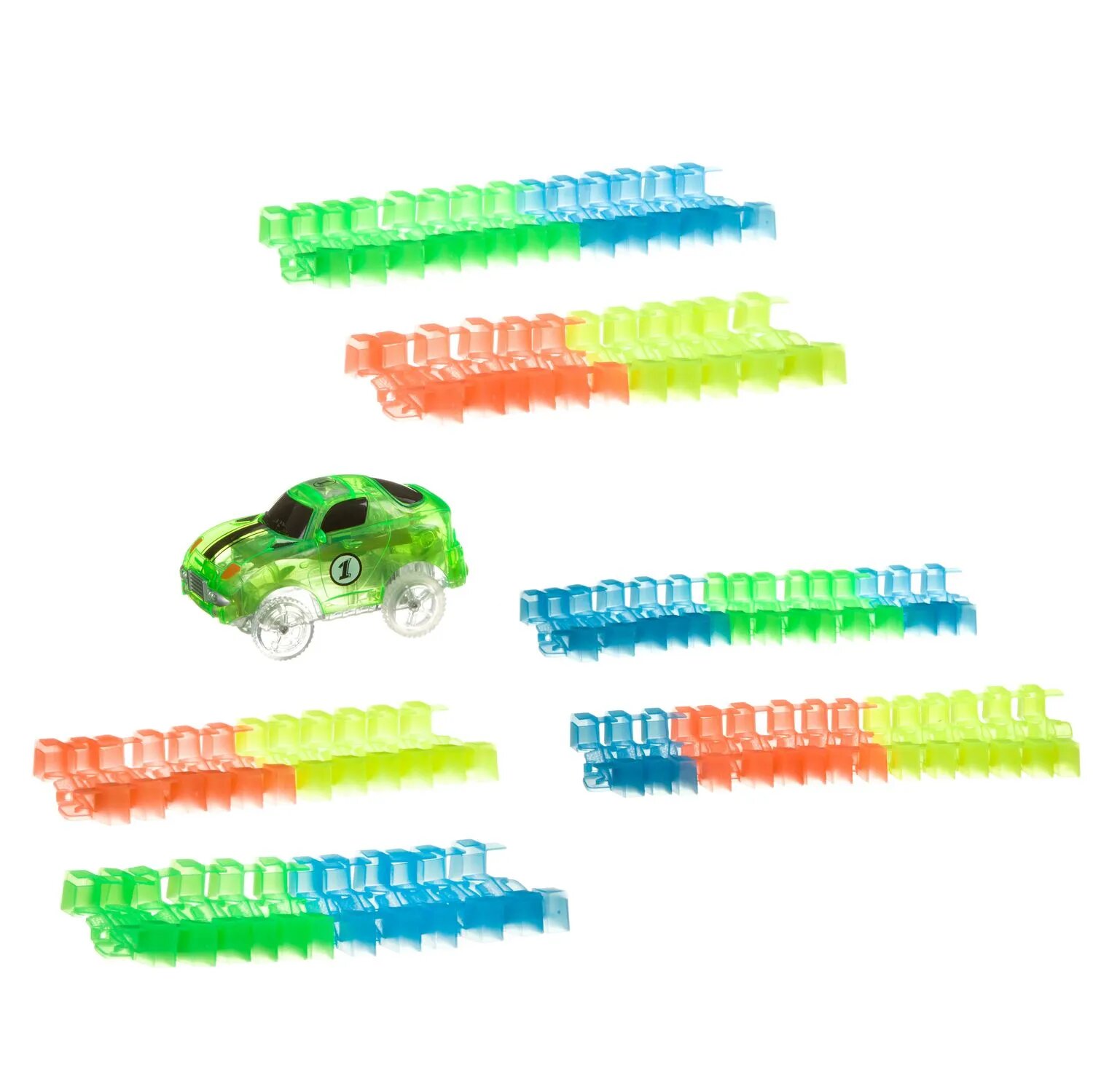 Гибкий автотрек Bondibon Ночная трасса, с машинкой, со светящейся трассой, 80 деталей