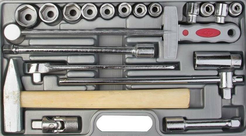 | Головки торцевые подробно | 1/2": 8, 10, 11, 12, 13, 14, 15, 17, 19, 22, 24, 27 мм; свечная 1/2": 21 мм; удлинитель 1/2": 125, 250 мм; вороток т-образный 1/2"; карданный шарнир 1/2" |