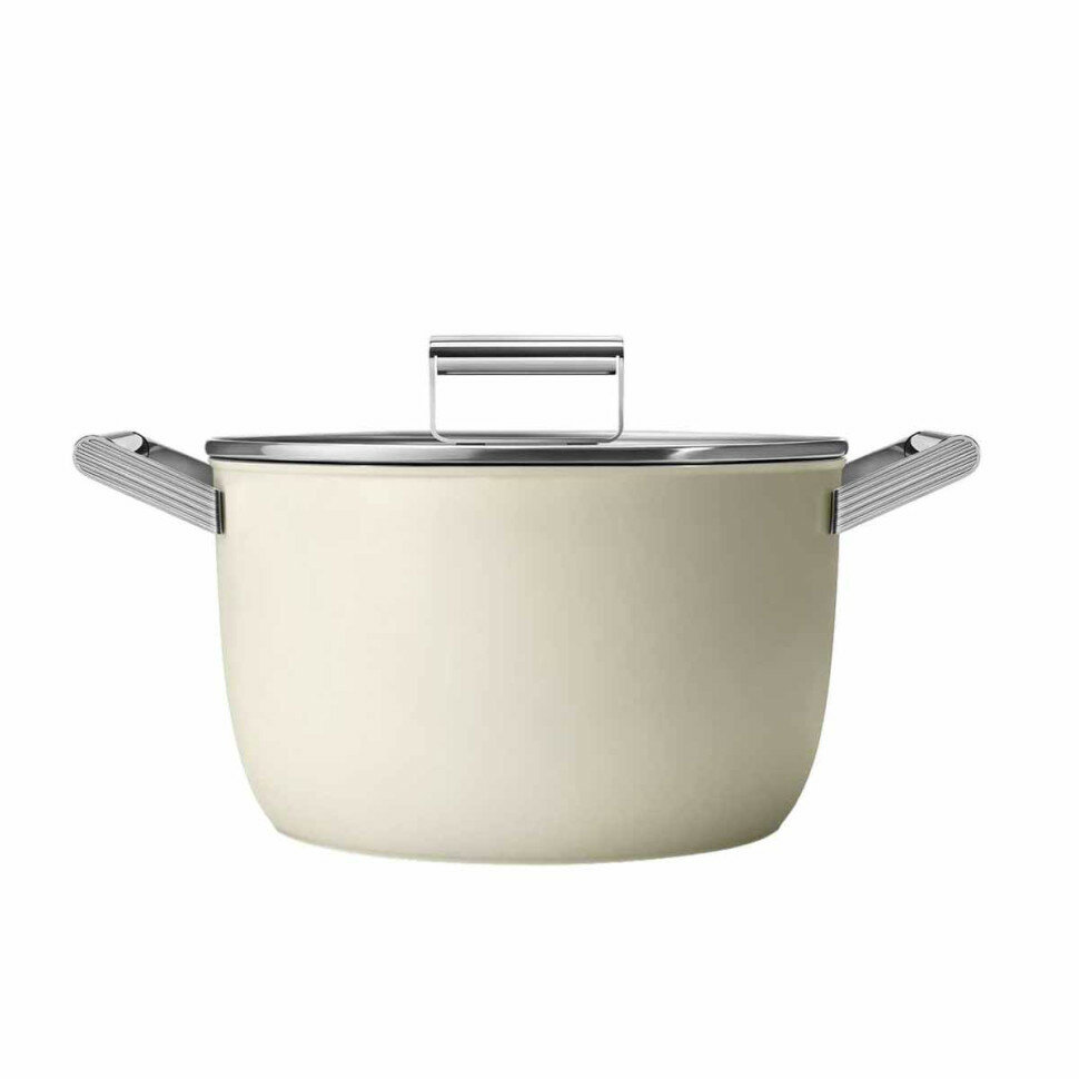 Кастрюля SMEG CKFC2611CRM с двумя ручками и крышкой 26 см, кремовая