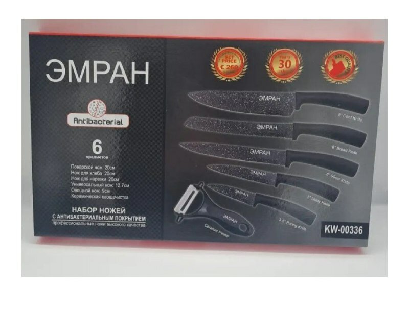 Набор кухонных ножей эмран с антибактериальным покрытием / Набор из 6 предметов, KW-00337