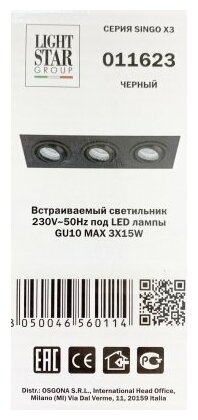 Спот Lightstar Singo 011623, GU5.3, 150 Вт, 3 лампы, 4000, нейтральный белый, цвет арматуры: черный, цвет плафона: черный