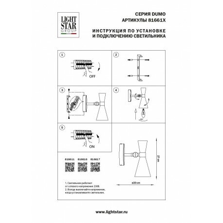 СохранитьНастенный светильник Lightstar Dumo 816616, E14, 40 Вт, кол-во ламп: 1 шт. интересное: