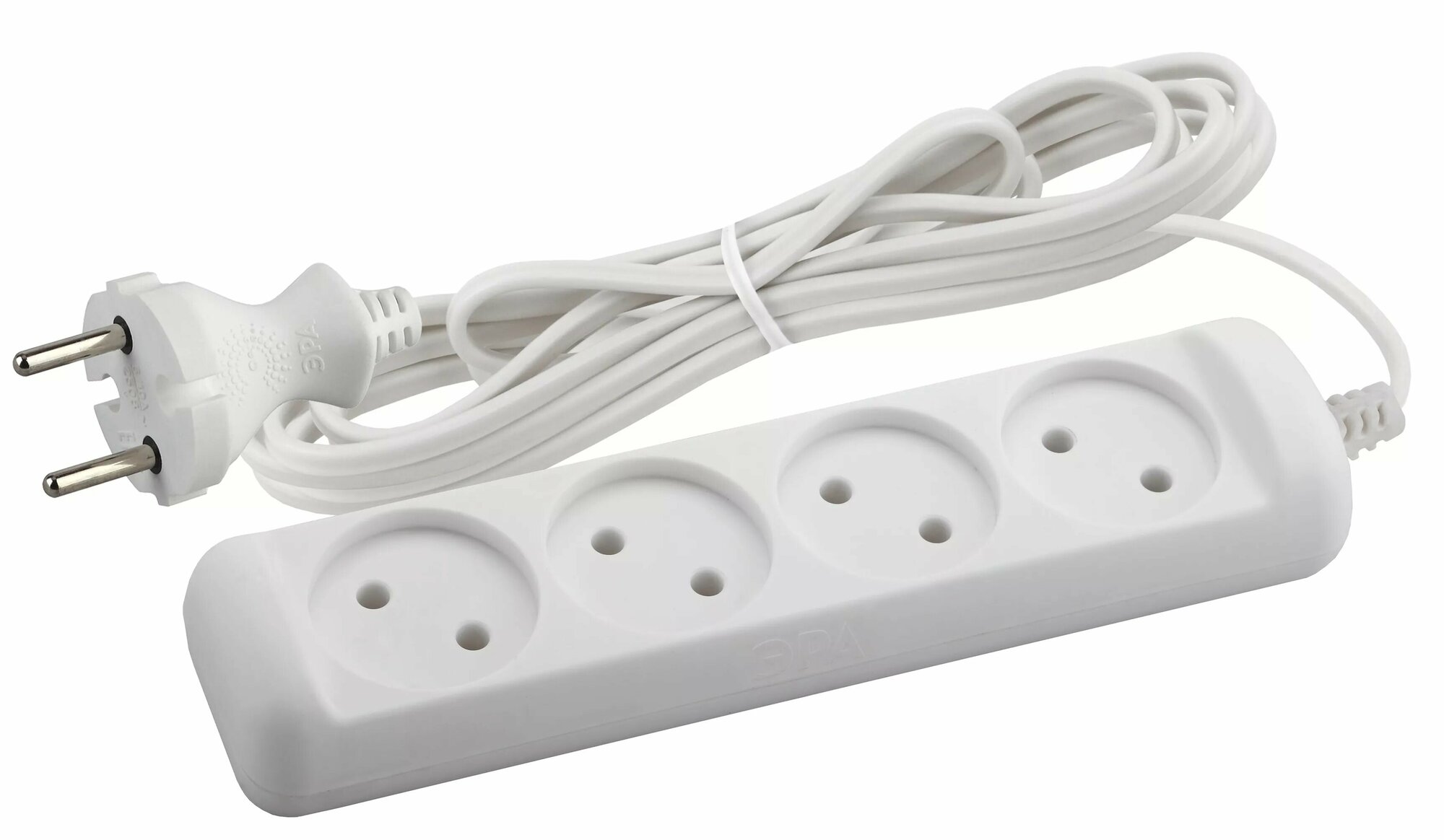 Удлинитель электрический ЭРА UХ(6)-4-3m без заземления 4 розетки 3м ПВС 2х0,75 мм2 6А белый (20/5/1) .