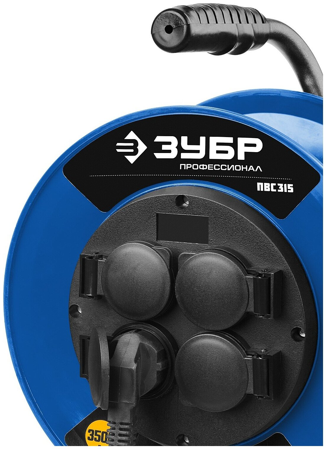 Удлинитель на катушке ПВС 315, 30 м, 3500 Вт, 4 гнезда, IP44, ПВС 3х1,5 кв мм, ЗУБР Профессионал {55081-30}