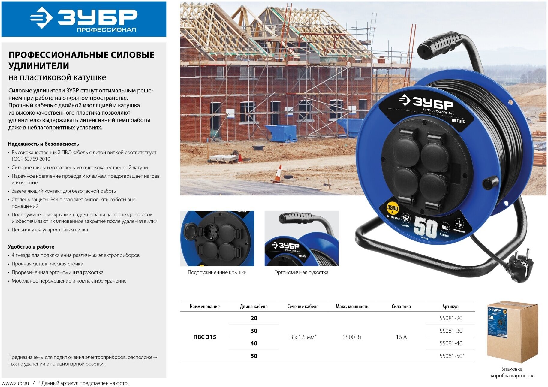 Удлинитель на катушке, ЗУБР Профессионал 55081-30