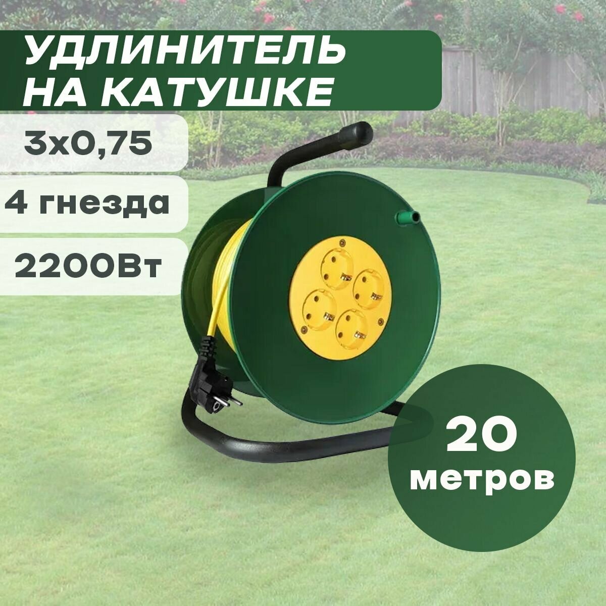 Удлинитель Союз с заземлением 20 м на катушке 2,2 кВт 4 розетки ПВС 3х0,75 мм2 IP20