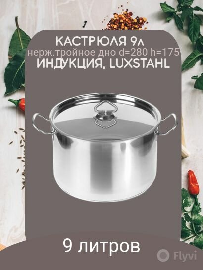 Кастрюля LUXSTAHL 9л тройное дно с крышкой / Котел из нержавеющей стали