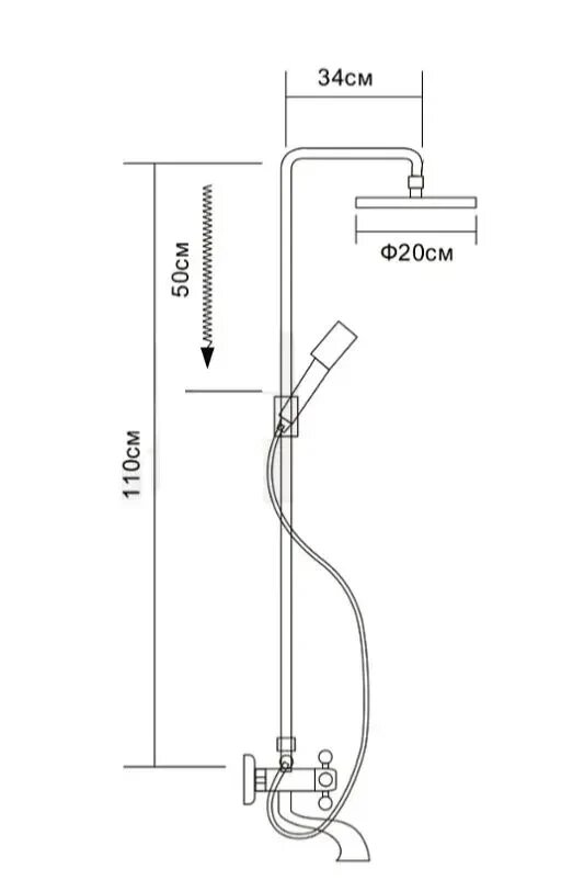 | Дополнительная информация | высота стойки для душа: 1100 мм; диаметр верхнего душа: 200 мм |