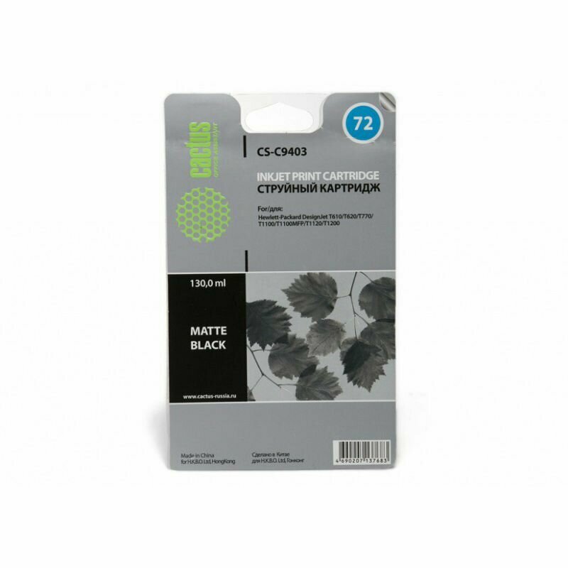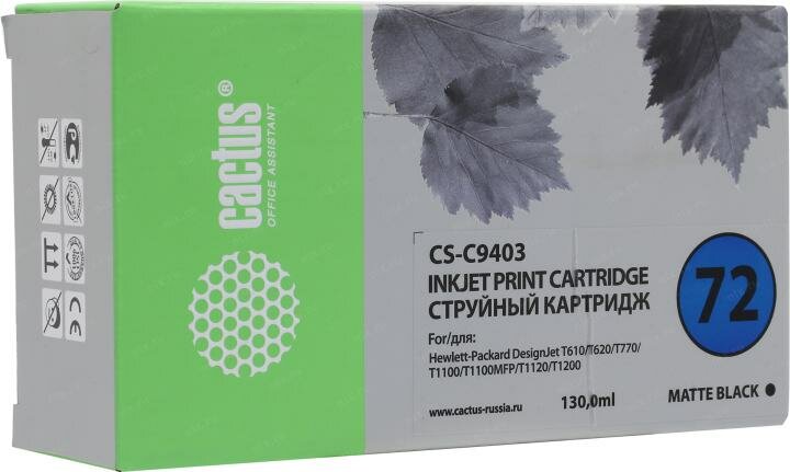 Картридж струйный Cactus CS-C9403 №72 черный матовый (130мл) для HP DJ T610/T620/T770/T1100/T1100MFP/T1120/T1200