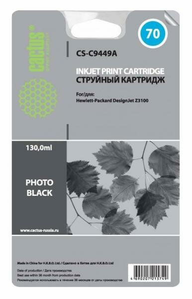 Струйный картридж Cactus CS-C9449A №70 черный (130мл) для HP DJ Z3100
