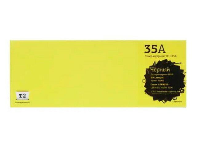 Ниже Вы можете прочитать отзывы на Лазерный картридж T2 TC-H35A (CB435A/CB436A/CE285A/85A/35A) для принтеров HP / Canon, черный, ознакомится с подробными характеристиками, посмотреть интересные обзоры и фотографии на Лазерный картридж T2 TC-H35A (CB435A/CB436A/CE285A/85A/35A) для принтеров HP / Canon, черный.
