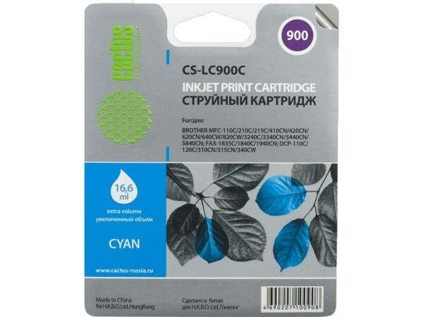 Картридж струйный Cactus CS-LC900С CS-LC900C голубой (16.6мл) для Brother DCP-110/115/120/MFC-210/215/FAX-1840