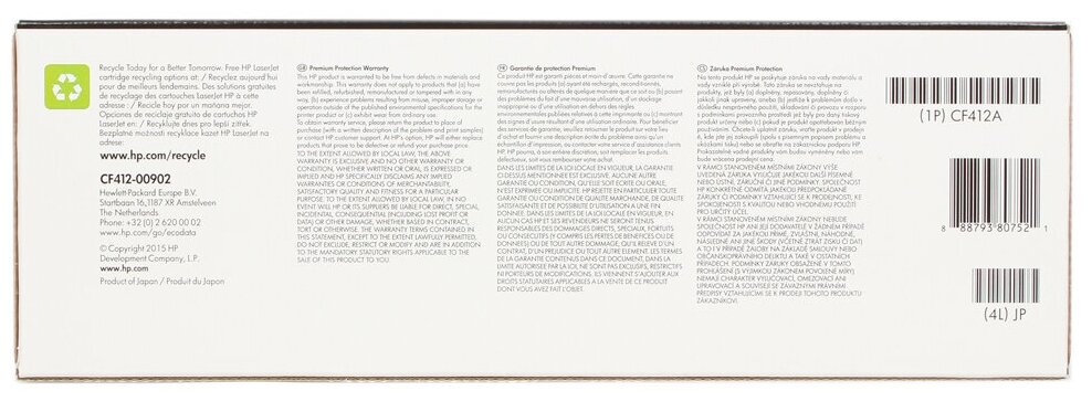 Картридж HP CF412A желтый HP 410A для LaserJet M452/477 Yellow 2,3K