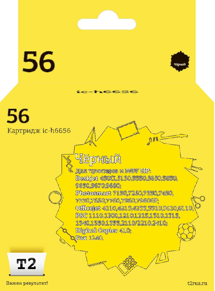 IC-H6656 Картридж T2 № 56 для HP Deskjet 450Ci/5145/5150/5550/5650/5850/9650/9670/9680/Photosmart 7150/7260/7350/7450/7550/7660/7760/7960/Officejet 4215/4252/4255/5510/5610/6110/PSC1110/1200/1310/1315/1340/1350/2110/2210/2410/2510/Digital Copier 410, черн