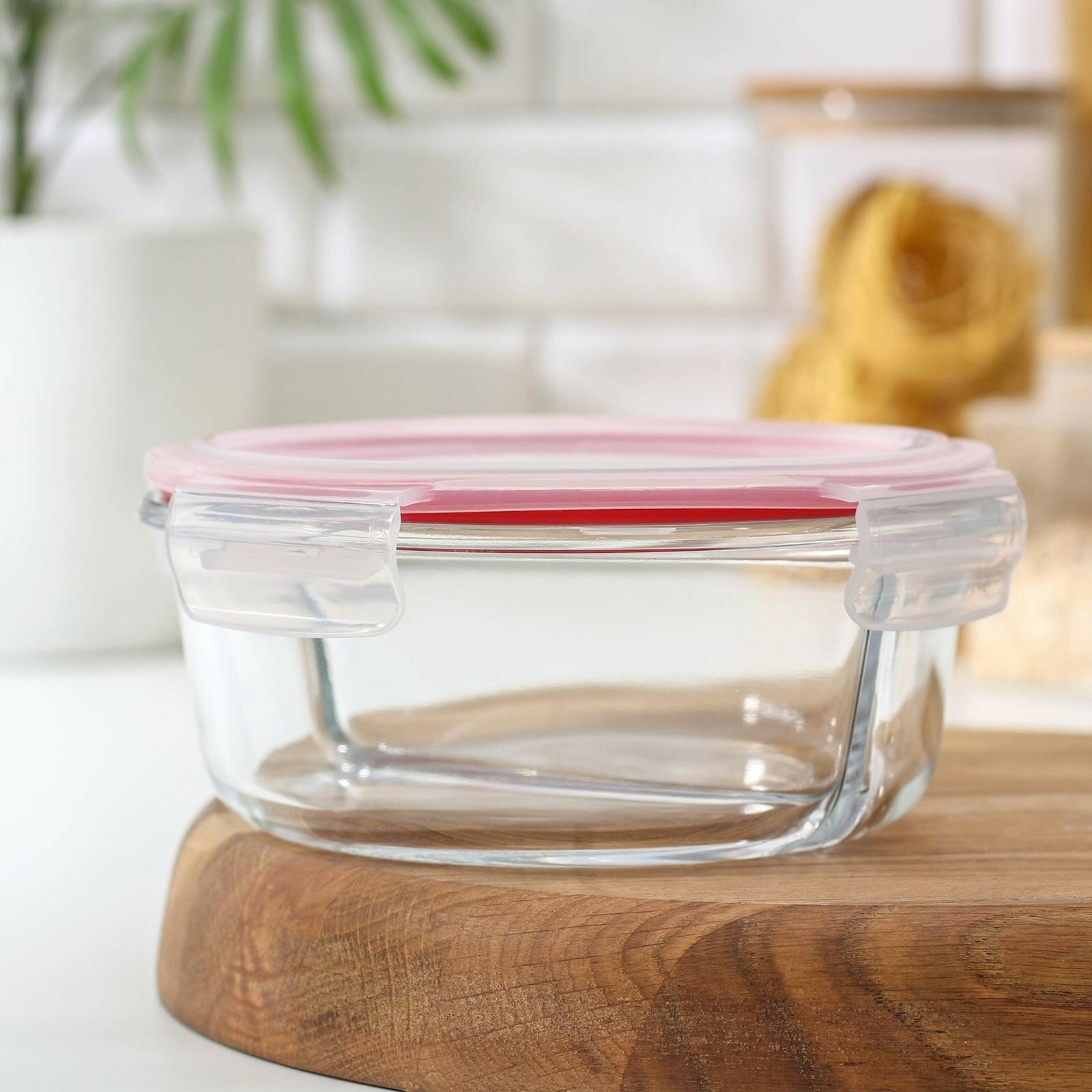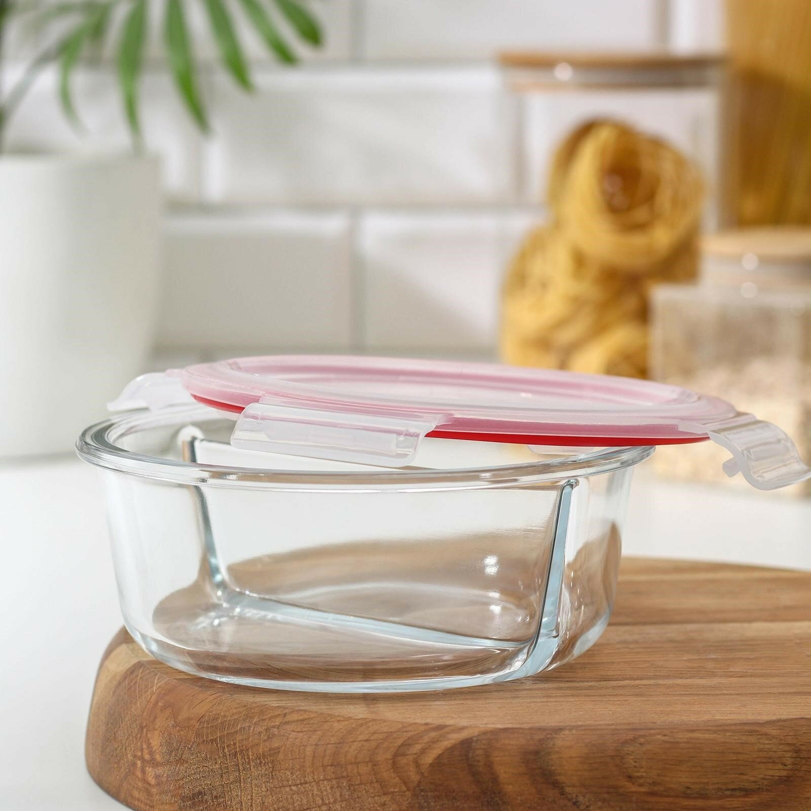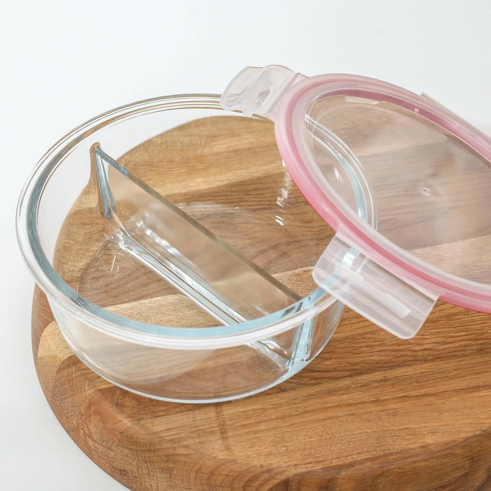 Контейнер из жаропрочного стекла Доляна «Клик», двухсекционный, каждая секция 400 мл, круглый, с крышкой