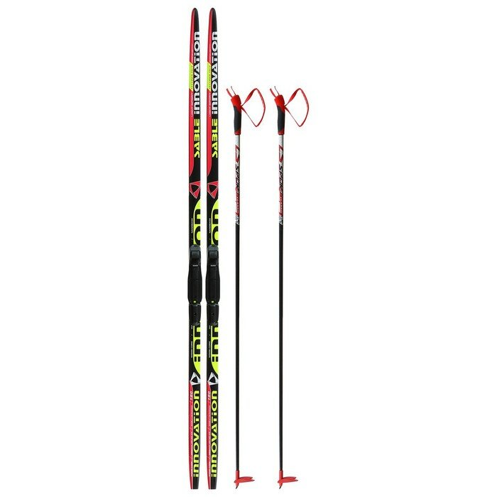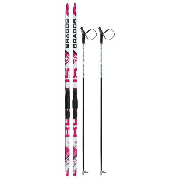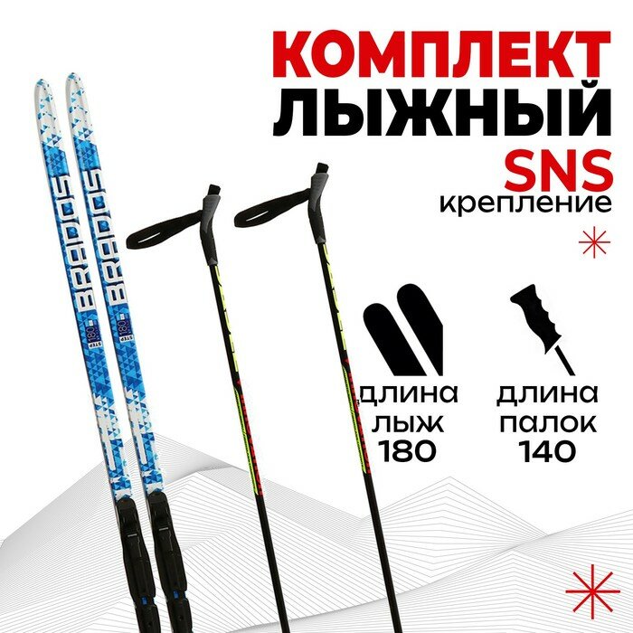 Купить Комплект лыжный: пластиковые лыжи 180 см с насечкой, стеклопластиковые палки 140 см, крепления SNS «бренд ЦСТ Step», цвета микс
