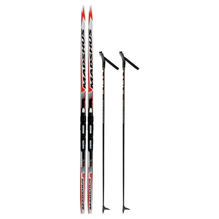 Комплект лыжный: пластиковые лыжи 185 см с насечкой, стеклопластиковые палки 145 см, крепления NNN, цвета микс