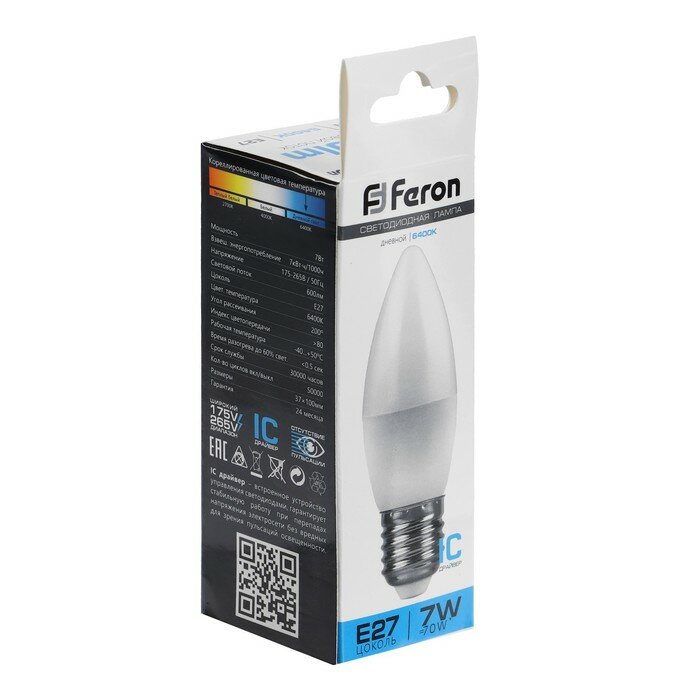 Лампа светодиодная LB-97 Свеча E27 7W 6400K, FERON 25883 (1 шт.) интересное: