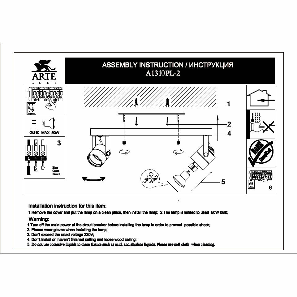 | Подробная комплектация | Споты и трек-системы Arte Lamp A1310PL-2CC |