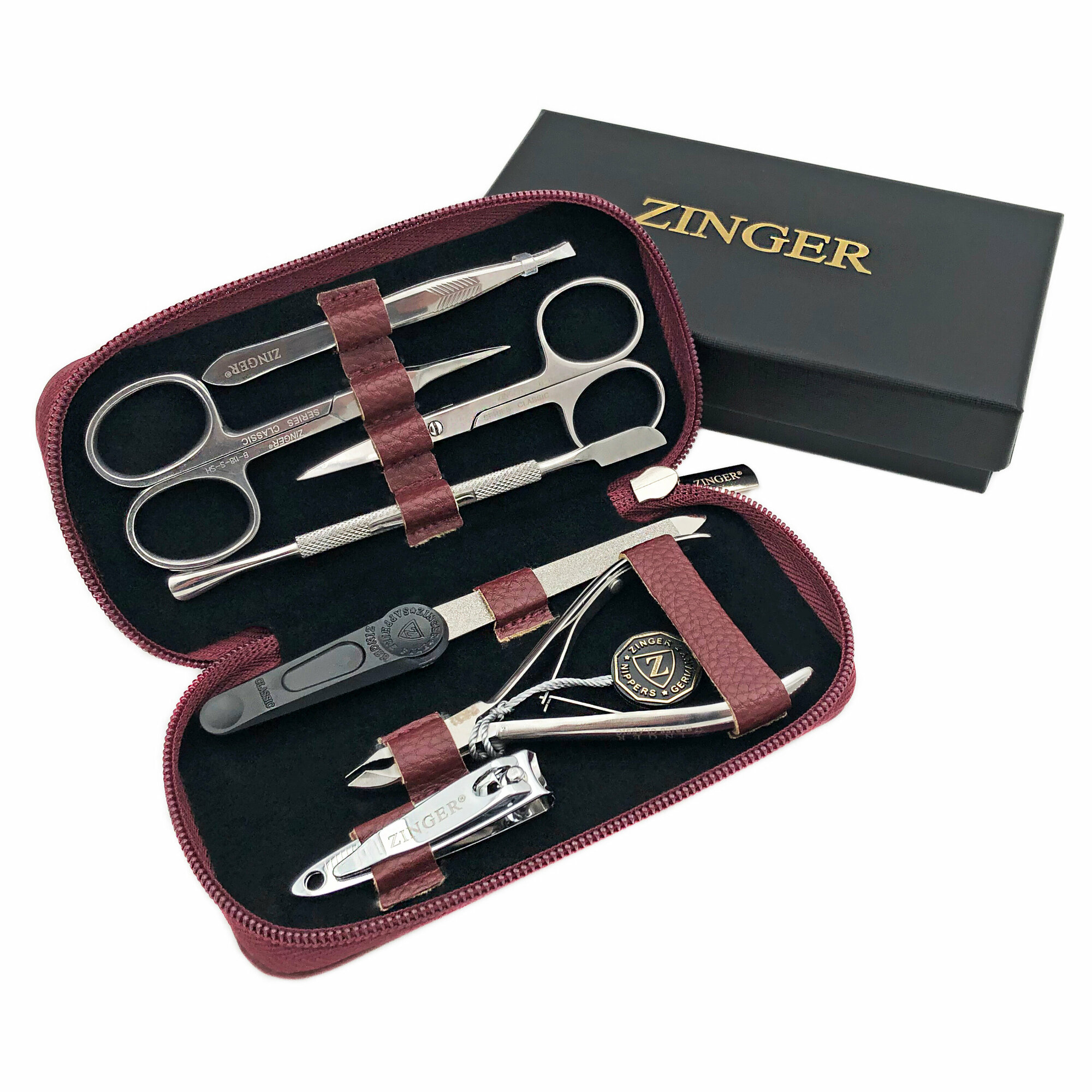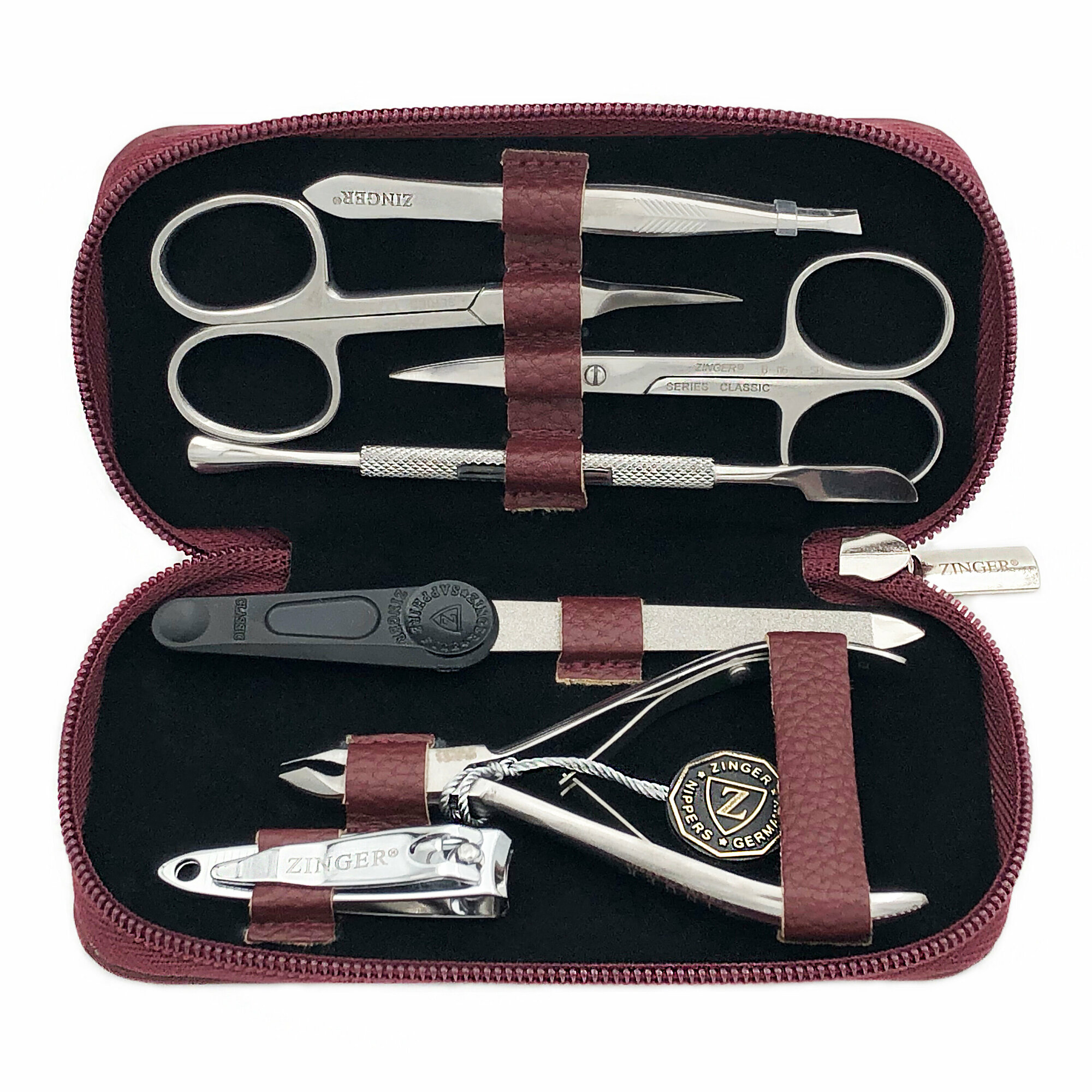 Маникюрный набор Zinger 7105 S, серебристый/бордовый, 7 предметов