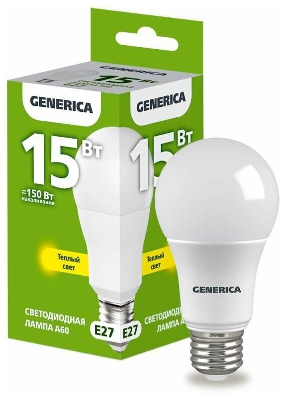 Лампа светодиодная Generica A60-15, E27, A60, 15 Вт, 3000 К