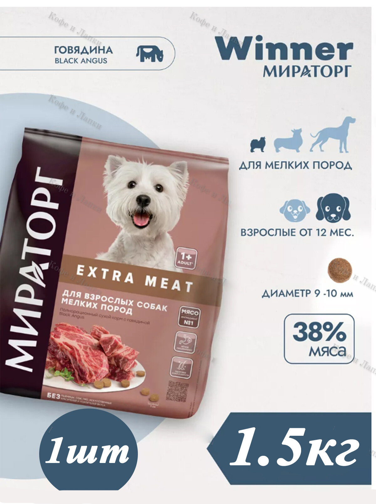 Сухой корм мираторг EXTRA MEAT для взрослых собак маленьких пород с говядиной Black Angus ( 1,5 кг)