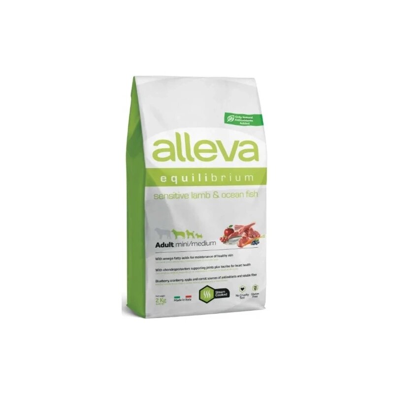 Сухой корм для собак ALLEVA EQUILIBRIUM SENSITIVE LAMB AND OCEAN FISH ADULT MINI/MEDIUM Аллева Корм для взрослых собак мелких и средних пород Эквилибриум Сенситив с ягненком и океанической рыбой 2 кг