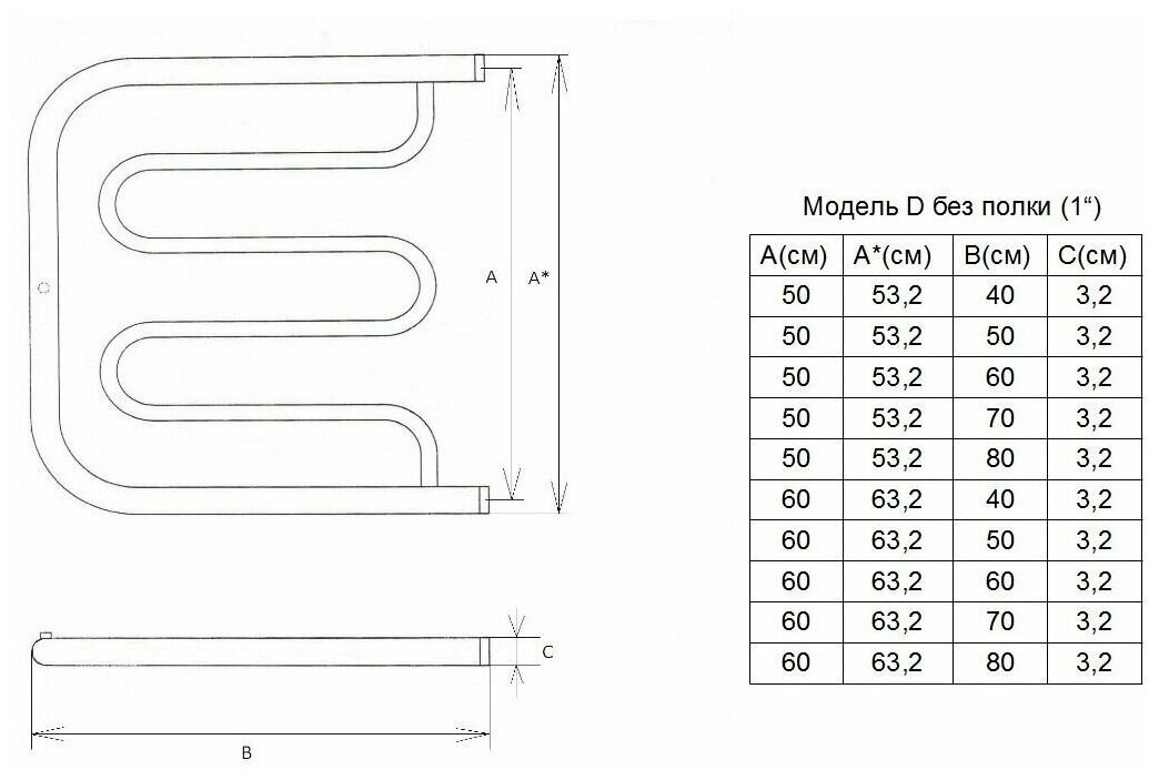 Полотенцесушитель двин D 50/60 1"-1/2" Без полки Водяной, К0